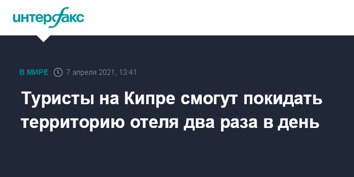 Москва. 7 апреля. INTERFAX.RU - Власти Кипра разработали специальную декларацию для туристов, позволяющую без смс-разрешения покидать территорию отеля, однако не более двух раз в день в будни и трех - в выходные, сообщает газета Cyprus Mail.