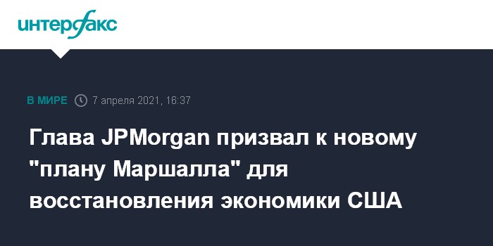 Глава JPMorgan призвал к новому "плану Маршалла" для восстановления экономики США