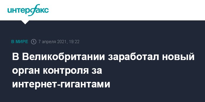 Москва. 7 апреля. INTERFAX.RU - Великобритания создала новый регулирующий орган, который займется вопросами антиконкурентного поведения среди крупнейших в мире технологических компаний.