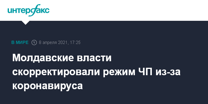 Москва. 8 апреля. INTERFAX.RU - Комиссия по чрезвычайному положению при правительстве Молдавии внесла изменения в режим ЧП, введенный из-за коронавируса с 1 апреля по 30 мая.