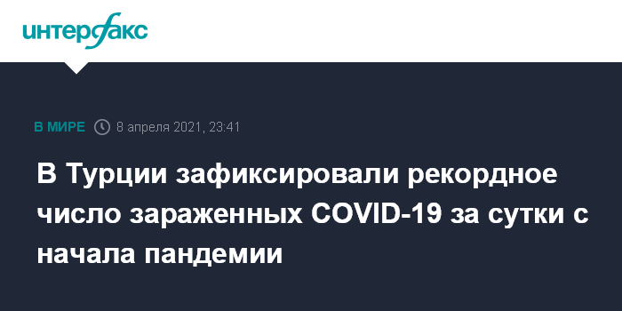 Москва. 8 апреля. INTERFAX.RU - В Турции зафиксирован рекордный суточный прирост зараженных COVID-19 с начала пандемии.