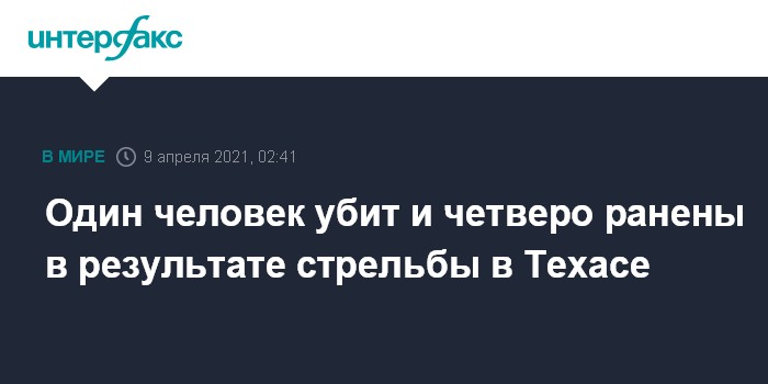 Москва. 9 апреля. INTERFAX.RU - Один человек погиб и еще четыре получили ранения в результате стрельбы в городе Брайан (штат Техас), сообщает телеканал ABCNews.