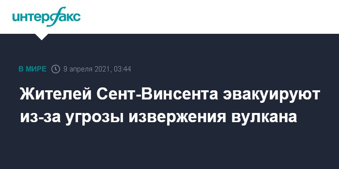 Москва. 9 апреля. INTERFAX.RU - Премьер-министр Сент-Винсент и Гренадин Ральф Гонсалвеш издал в четверг распоряжение об эвакуации местных жителей после нескольких дней повышенной сейсмической активности.