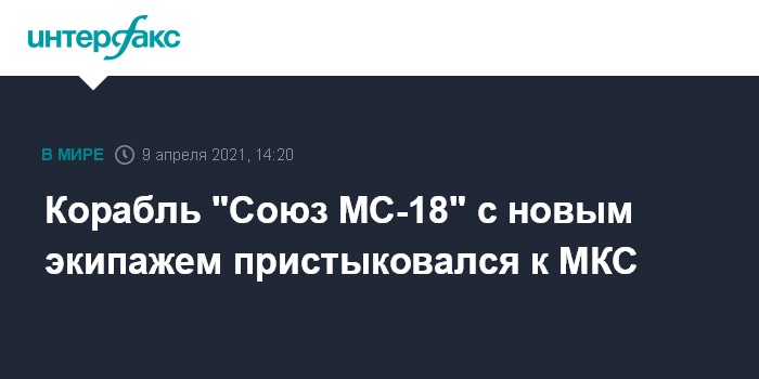 Москва. 9 апреля. INTERFAX.RU - Транспортный пилотируемый корабль (ТПК) "Союз МС-18" с российско-американским экипажем долетел до Международной космической станции (МКС) по сверхбыстрой схеме и пристыковался к ней.