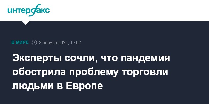 Москва. 9 апреля. INTERFAX.RU - Пандемия COVID-19 сделала проблему торговли людьми в Европе еще более острой, сообщила в ежегодном докладе группа экспертов по борьбе с торговлей людьми Совета Европы.