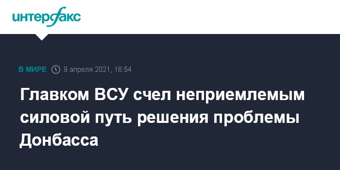 Главком ВСУ счел неприемлемым силовой путь решения проблемы Донбасса