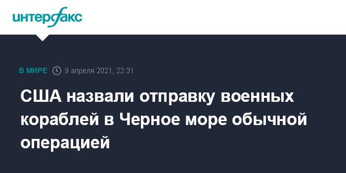 Ранее в пятницу канал NTV со ссылкой на МИД Турции сообщил, что США уведомили турецкие власти об отправке двух боевых кораблей в Черное море на следующей неделе. Корабли, как ожидается, пробудут в Черном море до 4 мая.