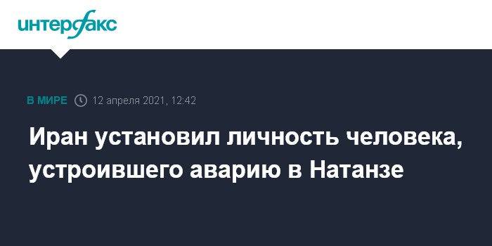Москва. 12 апреля. INTERFAX.RU - Тегеран установил личность человека, который стоит за инцидентом на иранском ядерном объекте в Натанзе, на данный момент принимаются меры для его ареста. Об этом сообщили иранские СМИ со ссылкой на источник в министерстве разведки Ирана.