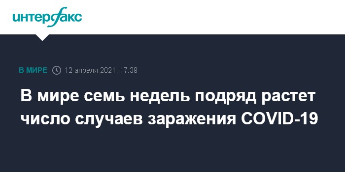 Москва. 12 апреля. INTERFAX.RU - Число заражений коронавирусом COVID-19 по всему миру росло семь недель подряд, а количество летальных исходов увеличивалось четыре недели подряд, сообщил гендиректор Всемирной организации здравоохранения (ВОЗ) Тедрос Адханом Гебрейесус.