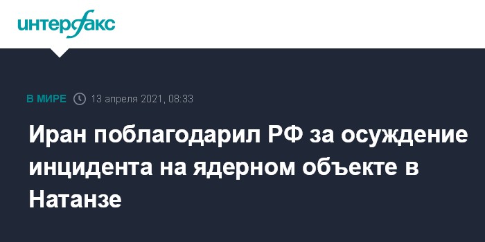 Москва. 13 апреля. INTERFAX.RU - Иран благодарен России за осуждение инцидента в Натанзе, заявил во вторник глава иранского МИД Джавад Зариф.