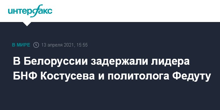 Москва. 13 апреля. INTERFAX.RU - КГБ Белоруссии сообщил о задержании в рамках уголовного дела лидера старейшей в стране оппозиционной партии "Белорусский народный фронт" (БНФ) Григория Костусева и политолога Александра Федуты.