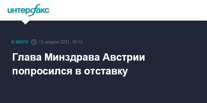 Москва. 13 апреля. INTERFAX.RU - Министр здравоохранения Австрии Рудольф Аншобер подал в отставку, передает телеканал ORF.