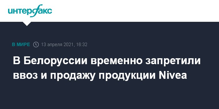 Москва. 13 апреля. INTERFAX.RU - Временная мера по запрету ввоза и обращения отдельных товаров Nivea введена в Белоруссии. Соответствующее постановление подписал 6 апреля главный государственный санитарный врач Белоруссии Александр Тарасенко.