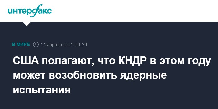 Москва. 14 апреля. INTERFAX.RU - Лидер КНДР Ким Чен Ын в течение этого года может возобновить испытания ядерного оружия или ракет большой дальности, чтобы оказать давление на США, говорится в докладе Нацразведки США.