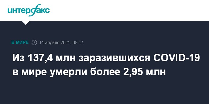 Из 137,4 млн заразившихся COVID-19 в мире умерли более 2,95 млн