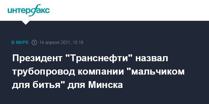 Президент "Транснефти" назвал трубопровод компании "мальчиком для битья" для Минска
