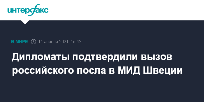 Ранее 14 апреля министр иностранных дел Швеции Анн Линде сообщила, что российского посла вызвали в министерство после кибератак на спортивную федерацию страны.