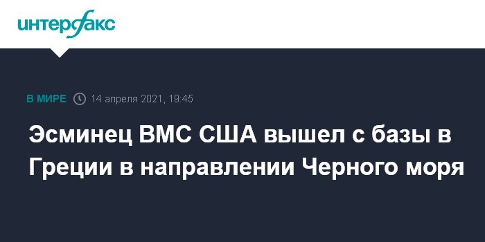 На базе Суда-Бэй, куда эсминец зашел в среду утром, он пробыл около девяти часов. После выхода из нее американский корабль пошел курсом на север к проливу Дарданеллы. Его скорость составляет 14,3 узла в час (около 26,5 км в час). Он может войти в Черное море уже в четверг, 15 апреля.