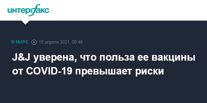 J&J уверена, что польза ее вакцины от COVID-19 превышает риски