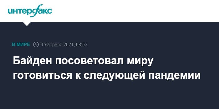 Москва. 15 апреля. INTERFAX.RU - Президент США Джо Байден заявил, что считает нужным уже сейчас готовиться к следующей пандемии, с которой столкнется человечество.