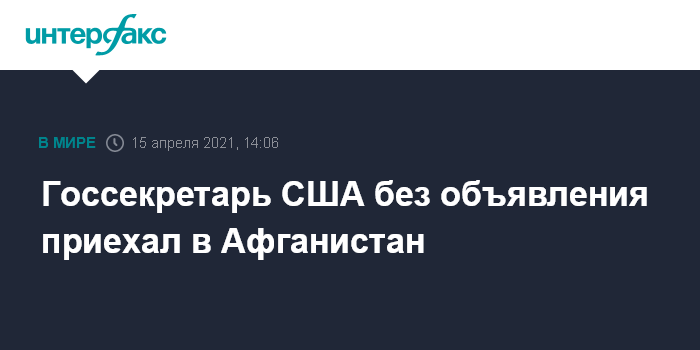 "Госсекретарь США Энтони Блинкен совершает необъявленный визит в Афганистан, чтобы передать решение Байдена о выводе войск", - информирует агентство.