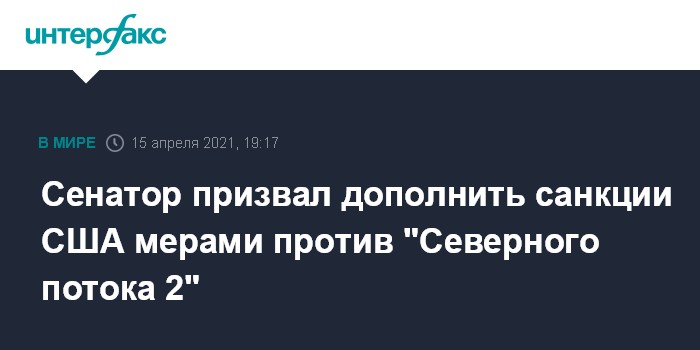 Москва. 15 апреля. INTERFAX.RU - Американский сенатор-республиканец Пэт Туми в четверг заявил о необходимости дополнить введенные в четверг администрацией США санкции против России ограничительными мерами против "Северного потока 2", говорится в заявлении, распространенном на его сайте.