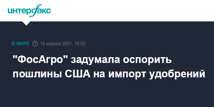 "Мы рассматриваем все рынки в совокупности и выбираем те рынки, на которых самая лучшая цена. Если предположить, что американская цена будет выше, чем на других рынках, мы, возможно, туда вернёмся. Но конкретно за четыре месяца текущего года мы не поставили ничего из того, на что уставлена пошлина. Мы продолжаем поставки кормовых фосфатов, которые не облагаются пошлиной", - пояснил глава "ФосАгро".