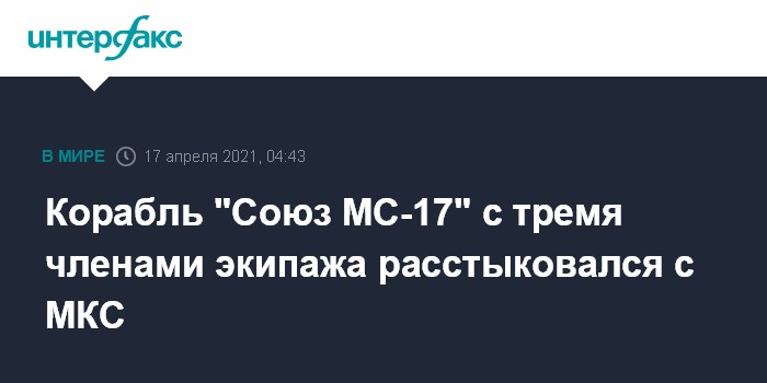 Корабль "Союз МС-17" с тремя членами экипажа расстыковался с МКС