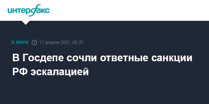 Москва. 17 апреля. INTERFAX.RU - Власти США не стремятся к эскалации напряженности в отношениях с Россией, но оставляют за собой право отвечать на вводимые Москвой санкции, заявил CNN представитель Госдепартамента.
