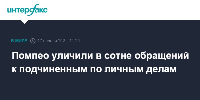 Москва. 17 апреля. INTERFAX.RU - Бывший госсекретарь США Майк Помпео и его супруга Сьюзан более ста раз обращались к подчиненным с личными поручениями, которые не были связаны с их служебными обязанностями, сообщает издание Politico со ссылкой на доклад аппарата генерального инспектора Госдепа.