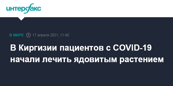 Москва. 17 апреля. INTERFAX.RU - Киргизские врачи лечат больных корнавирусом "иссык-кульским корнем", или аконитом джунгарским (Aconitum soongaricum) - очень ядовитым травянистым растением.