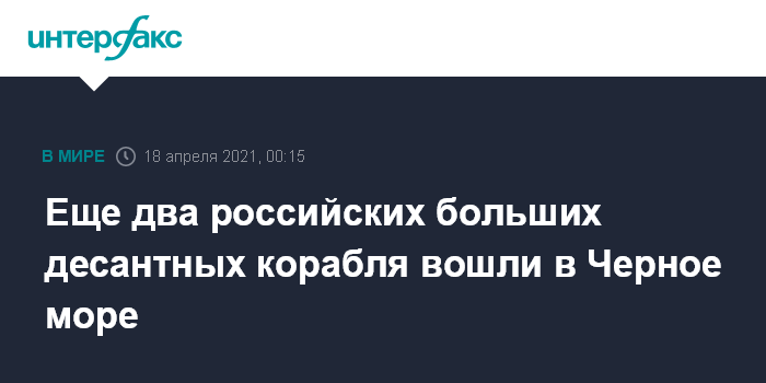 Москва. 18 апреля. INTERFAX.RU - Еще два больших десантных корабля (БДК) ВМФ России - "Калининград" и "Королев" в субботу, пройдя Босфор, вошли в акваторию Черного моря, сообщили стамбульские сайты, публикующие фотографии их прохождения через пролив.