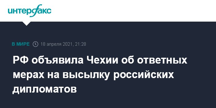 Москва. 18 апреля. INTERFAX.RU - Москва объявила Праге об ответных мерах на высылку из Чехии 18 российских дипломатов, заявил журналистам в воскресенье посол Чехии в Москве Витезслав Пивонька.