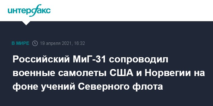 Российский МиГ-31 сопроводил военные самолеты США и Норвегии на фоне учений Северного флота