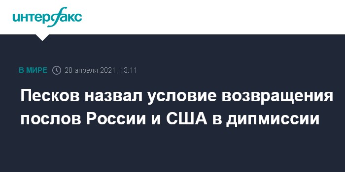 "Возвращение послов после консультаций в своих столицах обосновывается, в первую очередь, целесообразностью. Мы видим, что сейчас (отношения Москвы и Вашингтона - ИФ) в низшей своей точке, существуют определенные последствия тех недружественных мер, которые были предприняты в отношении нашей страны, и существуют те меры, которые были предприняты нашей страной в ответ", - сказал он на брифинге 20 апреля.