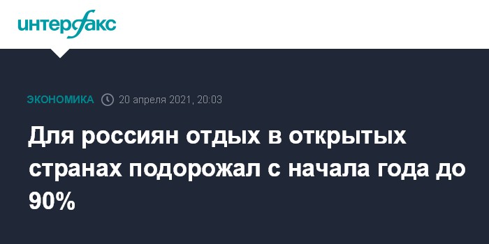 Москва. 20 апреля. INTERFAX.RU - С начала 2021 года стоимость зарубежных путешествий на большинстве открытых направлений выросла на 10-90%, в основном из-за подорожания авиаперелетов, свидетельствуют результаты исследования основных трендов туристического рынка, проведенного Ассоциацией туроператоров России (АТОР) и агентством Action Travel.