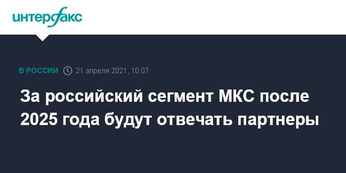 За российский сегмент МКС после 2025 года будут отвечать партнеры