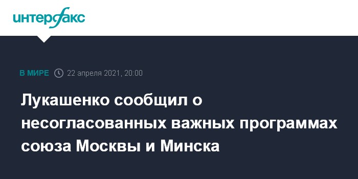 "Мы двигаемся серьезно по союзным программам. Вы помните - с (дорожных - ИФ) карт начинали. Очень серьезные программы. Наверное, 26 или 27 программ мы уже согласовали на уровне правительства. Немного осталось, 2-3 очень серьезные программы экономического характера", - сказал Лукашенко на встрече, трансляцию которой вел телеканал "Россия 24".