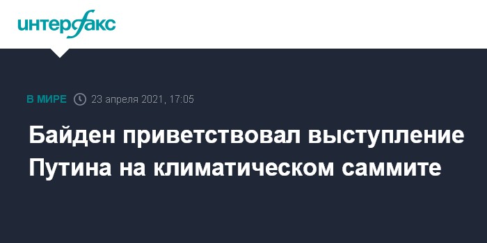 Москва. 23 апреля. INTERFAX.RU - Президент США Джо Байден в пятницу заявил, что на него произвело положительное впечатление выступление президента РФ Владимира Путина накануне на саммите лидеров по вопросам климата.