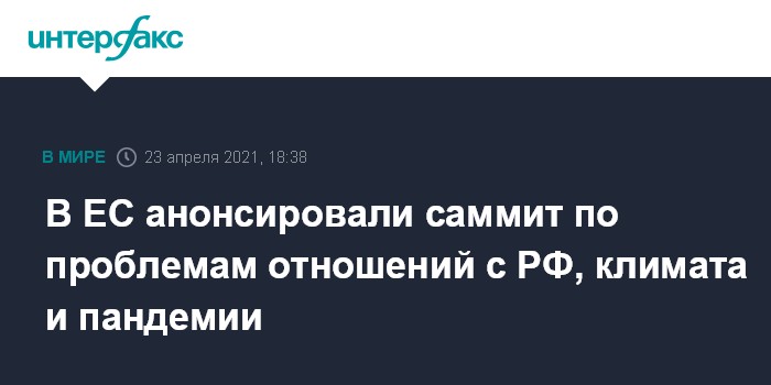 В ЕС анонсировали саммит по проблемам отношений с РФ, климата и пандемии
