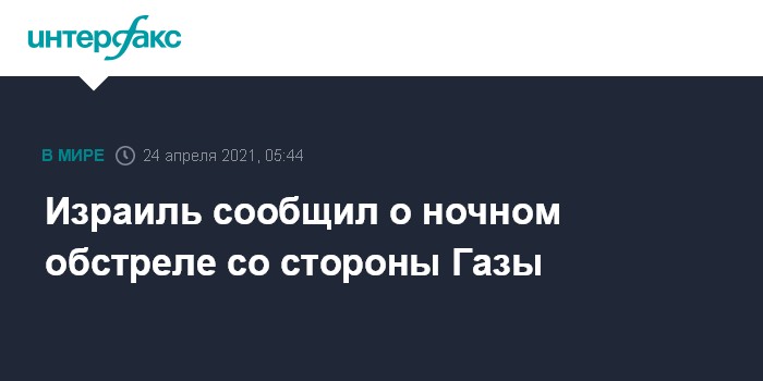 Израиль сообщил о ночном обстреле со стороны Газы
