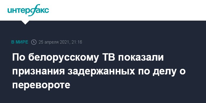 Москва. 25 апреля. INTERFAX.RU - В эфире белорусского телеканала ОНТ в воскресенье показали признания задержанных по делу о покушении на президента республики Александра Лукашенко.