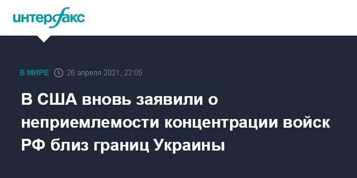 Москва. 26 апреля. INTERFAX.RU - Вашингтон считает неприемлемым наращивание численности российских военных близ границы с Украиной и расценивает это как эскалацию, заявила представитель Белого дома Джен Псаки на брифинге в понедельник.