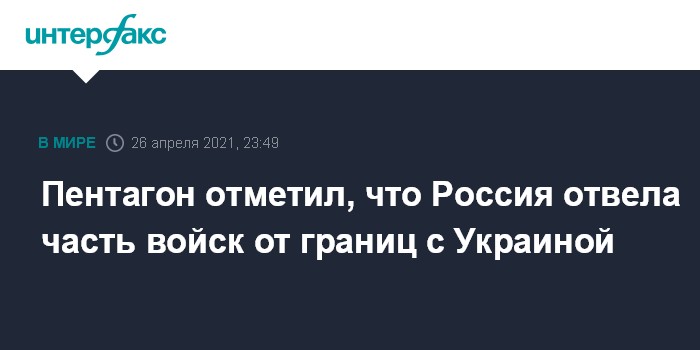 Москва. 26 апреля. INTERFAX.RU - Американские военные заявили, что Россия отвела часть войск от границы с Украиной, но они пока не могут определить, будет ли Россия возвращать в пункты дислокации все ранее переброшенные войска, заявил в понедельник представитель Пентагона Джон Кирби.