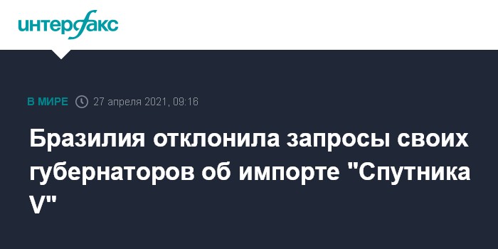 Издание напоминает, что в конце марта губернаторы ряда бразильских штатов обратились в Anvisa с просьбой дать в складывающихся исключительных условиях временное разрешение на импорт и применение без регистрации в Бразилии ряда вакцин зарубежного производства, в том числе и российского "Спутника V".