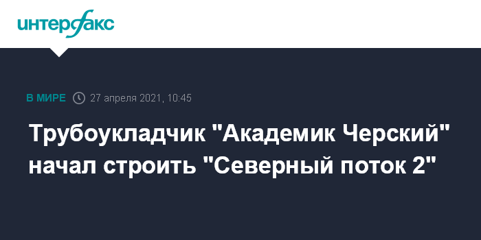 Москва. 27 апреля. INTERFAX.RU - Второе российское трубоукладочное судно "Академик Черский" начинает строить "Северный поток 2", сообщила проектная компания Nord Stream 2 AG.