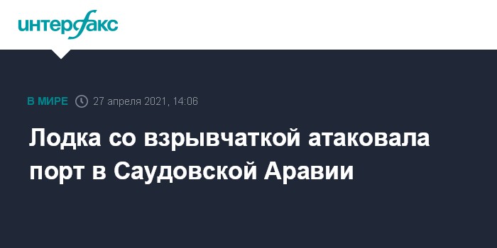 Москва. 27 апреля. INTERFAX.RU - Порт города Янбу-эль-Бахр, расположенный в Саудовской Аравии на побережье Красного моря, во вторник был атакован при помощи лодки, загруженной взрывчаткой, которой управляли на расстоянии. Об этом сообщает агентство Associated Press (AP).