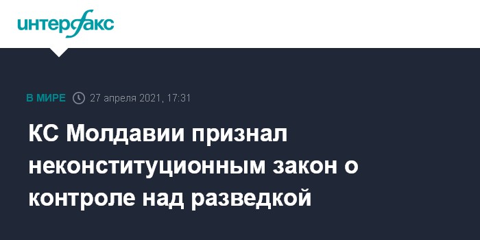 Москва. 27 апреля. INTERFAX.RU - Конституционный суд Молдавии (КС) 27 апреля признал неконституционным закон, ограничивающий полномочия президента в области безопасности. Соответствующий запрос ранее подали депутаты от оппозиции Сергей Литвиненко, Мария Чобану и Дину Плынгэу.