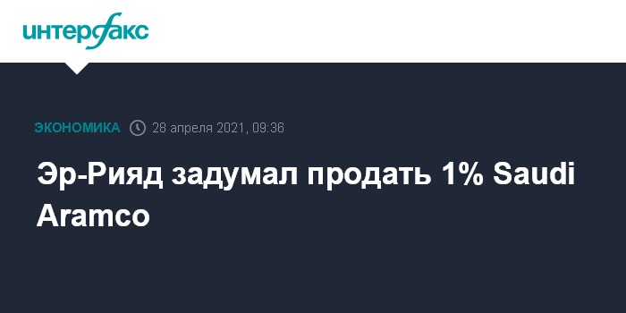 Москва. 28 апреля. INTERFAX.RU - Саудовская Аравия ведет переговоры о продаже 1% в государственной нефтегазовой компании Saudi Aramco в связи с ожиданиями по восстановлению глобальной экономики после пандемии коронавируса, передает Bloomberg.