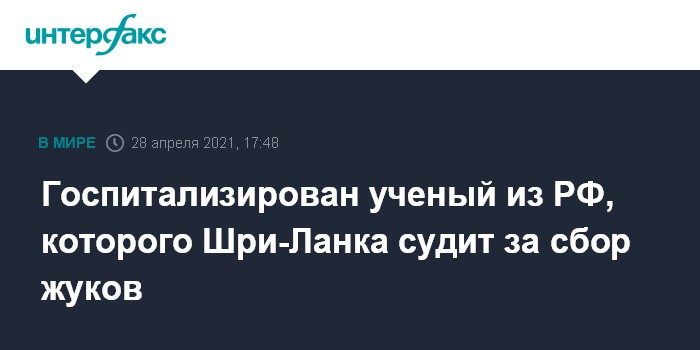 Госпитализирован ученый из РФ, которого Шри-Ланка судит за сбор жуков